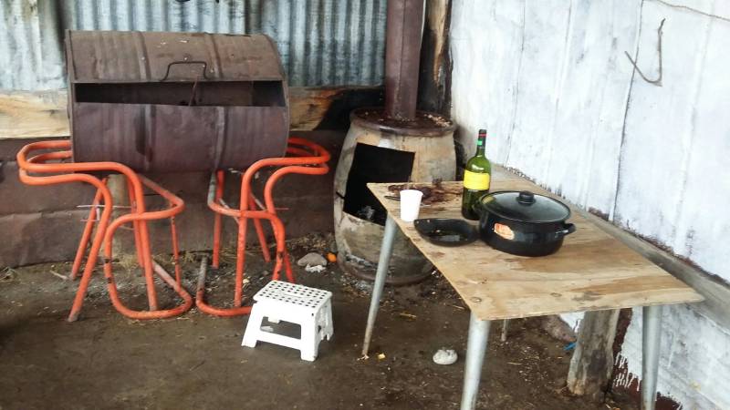 … and we found a sign “Juan Carlos camping” leading to this. A (mostly) finished wine bottle, pieces of asado and some other pieces of meat over the faintly glowing ambers. But where was Juan Carlos? Judging by the wine, was he taking a nap somewhere?