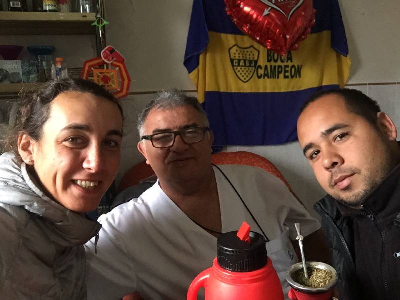 And as some of you might have guess, sure enough, after riding for no more than 10km came the first flat. I did not mind much though, that gave me a nice opportunity to practise some scales on the violin (which in turn I have no doubt motivated Javier to repair his flat faster!). With the newly set inner tube we went on to go through the customs and I finally came back to my dearest Argentina. As we arrived to the first town closest to the frontier we filled up our bags with chocolate, pasta, snacks, sugar and other nutritionally recommended food. As we prepared ourselves to go… Javier got A flat! That did not deter me to practise my C flat scale.